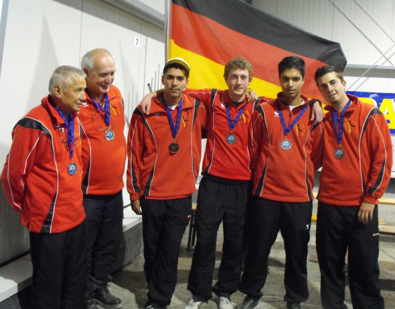 Auch das Herrenteam (Florian Korsch, Jannik Schaake, Zeki Egin und Micha Abdul), das den dritten Platz gewonnen hatte, stürmte hinterher. Der DPV-Präsident Klaus Eschbach, versuchte von der Turnierleitung aus über die Lautsprecheranlage zu gratulieren, er kam kaum gegen den Jubel in der Düsseldorfer Boulehalle an.