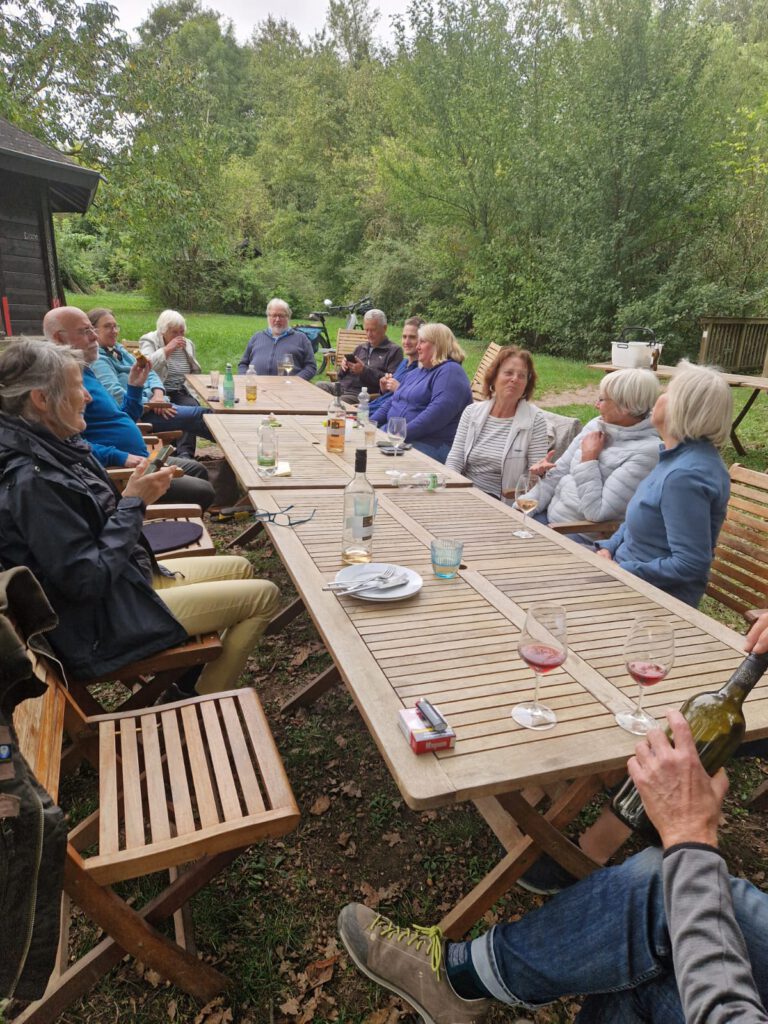 Die eine oder andere Partie wurde rund um die Hütte ( im wahrsten Sinn des Wortes) gespielt, zwischendrin gab es Gegrilltes, das eine oder andere Glas Wein und natürlich den einen oder anderen Plausch. Ein rundum geselliger Nachmittag, der uns viel Freude bereitet hat.